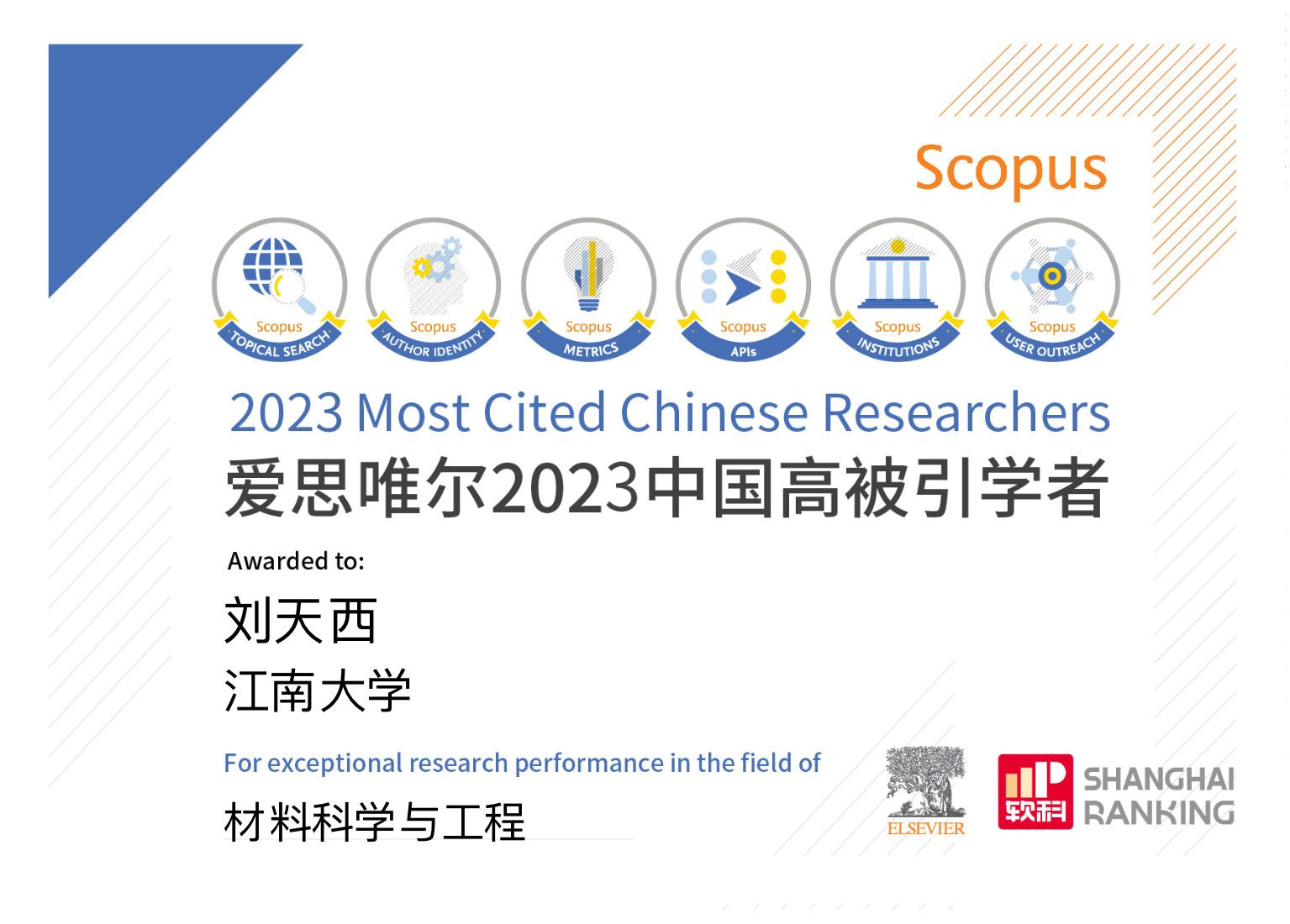 热烈祝贺刘天西教授入选2023“中国高被引学者”榜单丨材料科学与工程