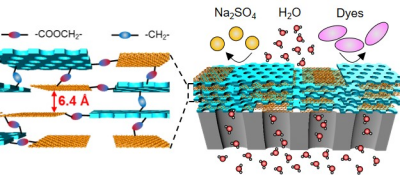 氧化石墨烯(GO)具有原子级厚度、丰富的含氧官能团以及良好的机械稳定性等优点,可用于构建超薄且坚固的层压膜并用于超快选择性水/离子分离。然而,水分子过度嵌入GO纳米通道内导致溶胀效应扩大层间距,降低GO膜的离子选择性,阻碍了GO膜的进一步发展和脱盐应用。在GO膜中引入多孔纳米片并增强层间相互作用是提高GO膜分离性能与稳定性的有效策略。