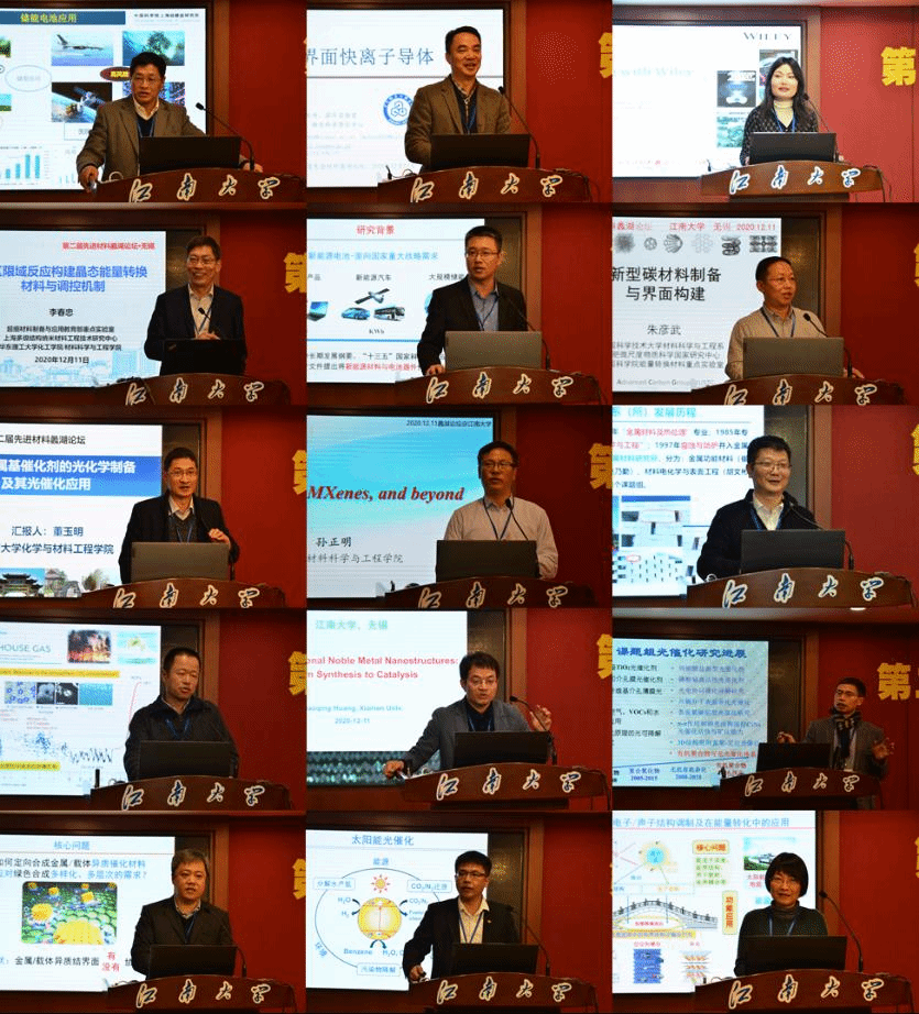 论坛共分为15个主题报告。来自中国科学院上海硅酸盐研究所、上海交通大学、华东理工大学、北京大学、中国科学技术大学、东南大学、天津大学、复旦大学、厦门大学、清华大学、中国科学院理化技术研究所等的知名专家分别围绕固态电池的材料复合与修饰技术、本体界面快离子导体、微区限域反应构筑晶态能量转换材料与调控机制、氢能关键催化材料、新型碳材料制备与界面构建、二维过渡金属碳化物材料、高温金属结构材料相变组织控制及其固相连接、电催化二氧化碳还原、低维贵金属纳米结构的合成及催化、高分子可见光催化、金属半导体异质结催化构效:莫特肖特基催化材料、水滑石基纳米光催化材料合成太阳燃料及高附加值化学品等内容做了精彩的高水平学术报告。Wiley出版社的编辑沈睦贤博士介绍了Advanced Functional Materials等期刊的历史和后续发展情况。我院董玉明教授分享了近期在过渡金属基催化材料方面取得的研究进展。最后,中国科学技术大学谢毅院士以“激子调控优化光催化氧活化”为题,系统介绍了她们团队在这一领域的研究进展。