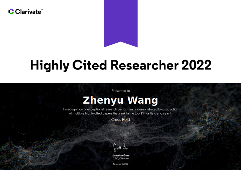 11月15日,科睿唯安发布了2022年度全球“高被引科学家”榜单,遴选全球高校、研究机构和商业组织中对所在研究领域具有重大和广泛影响的顶尖科学人才。来自全球69个国家和地区的6938名科学家入选2022年度榜单,中国内地科学家入榜人数排名第二,仅次于美国,共有1169人次入选。我院王震宇教授继2019、2020、2021年入选科睿唯安“高被引科学家”名录之后,再次荣登交叉学科领域榜单。