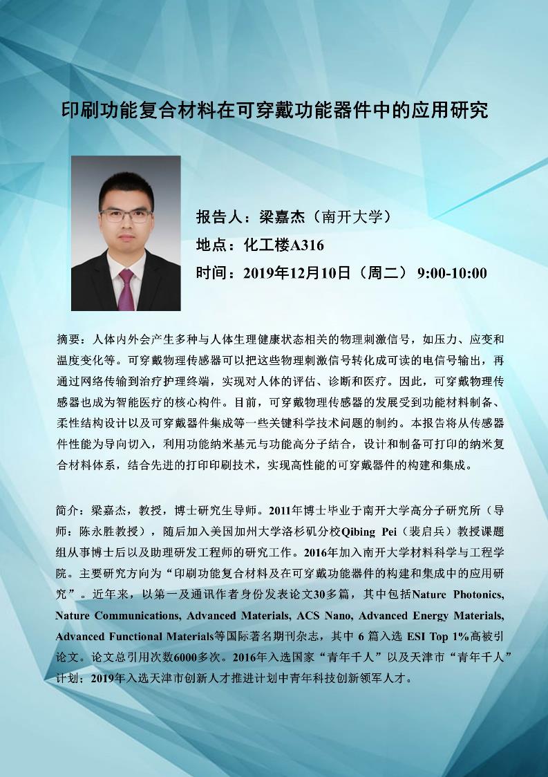 梁嘉杰:印刷功能复合材料在可穿戴功能器件中的应用研究